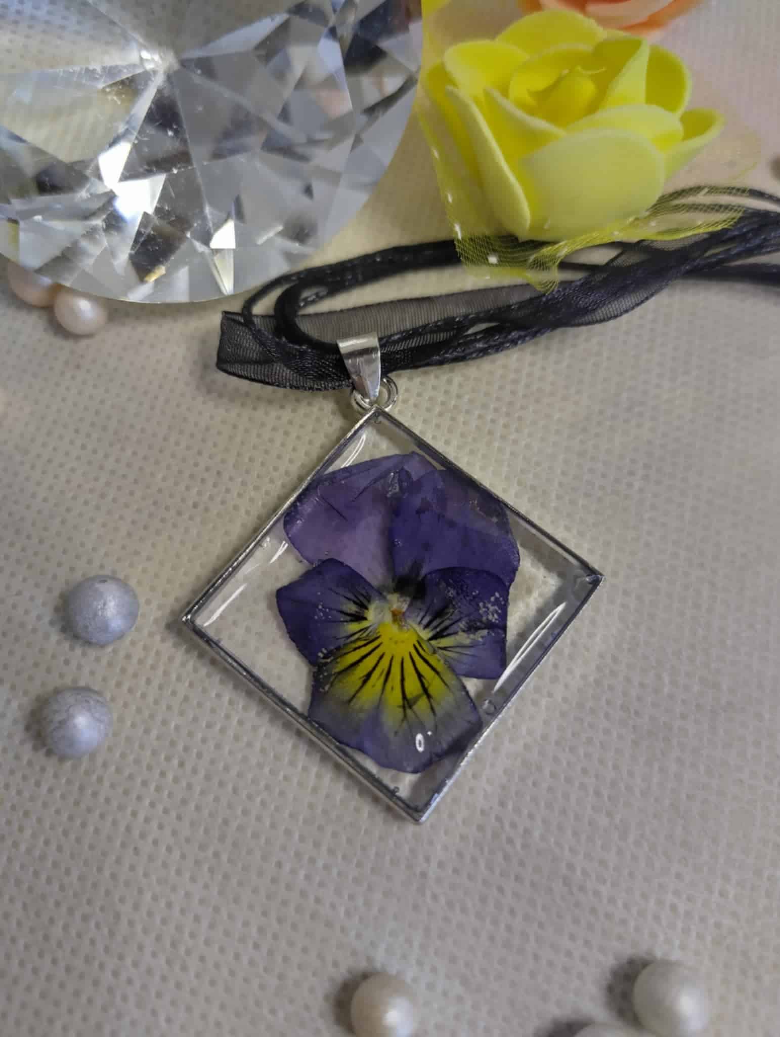 Ръчно изработен комплект бижута – колие и обеци от епоксидна смола
