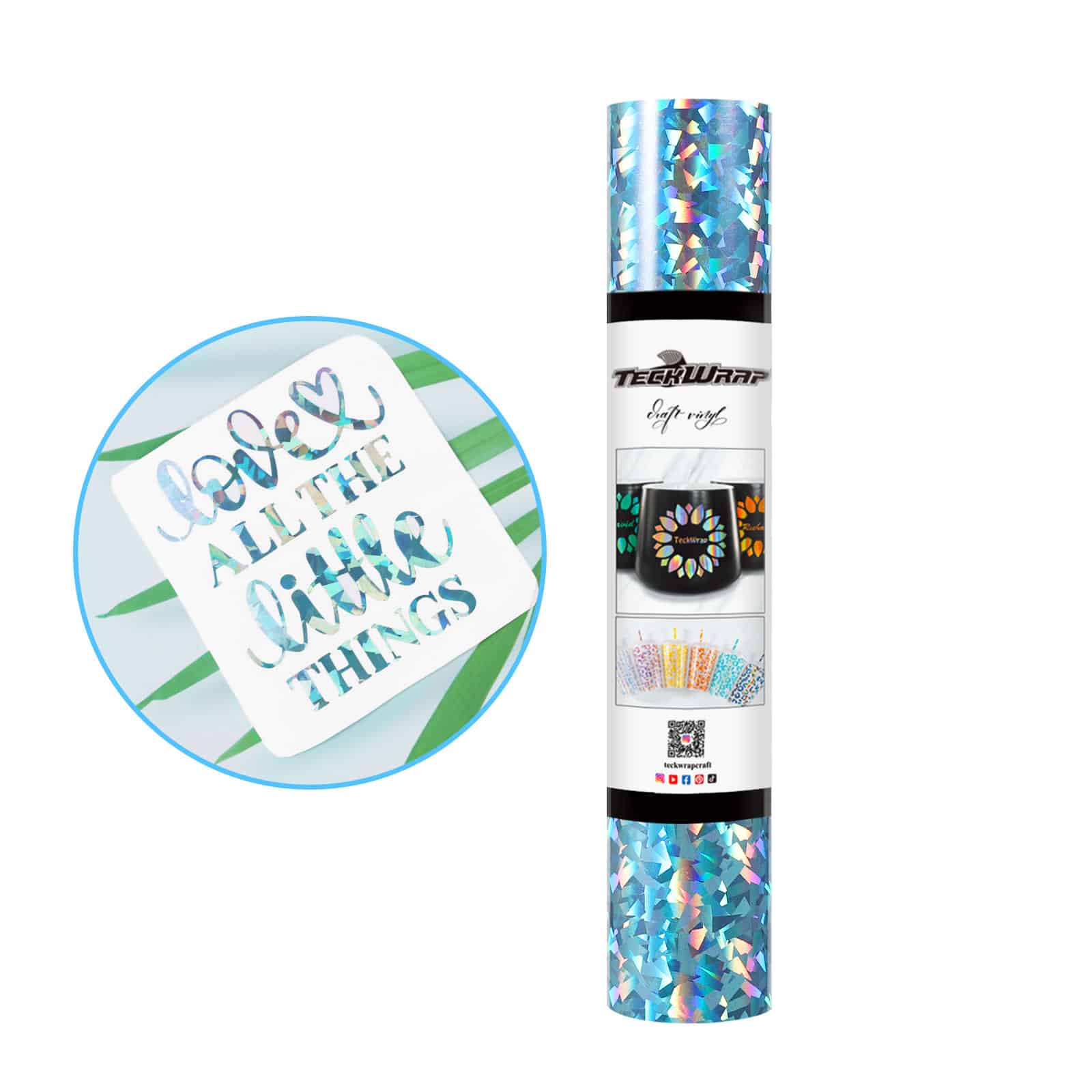 Крафт винилът на TeckWrap е висококачествен самозалепващ се филм, предназначен за рязане с плотер и декорация на различни повърхности – от чаши и бутилки до стени, лаптопи и автомобили. Предлага се в богата гама от цветове и ефекти – гланц, мат, холограмен, огледален, брокатен и други.